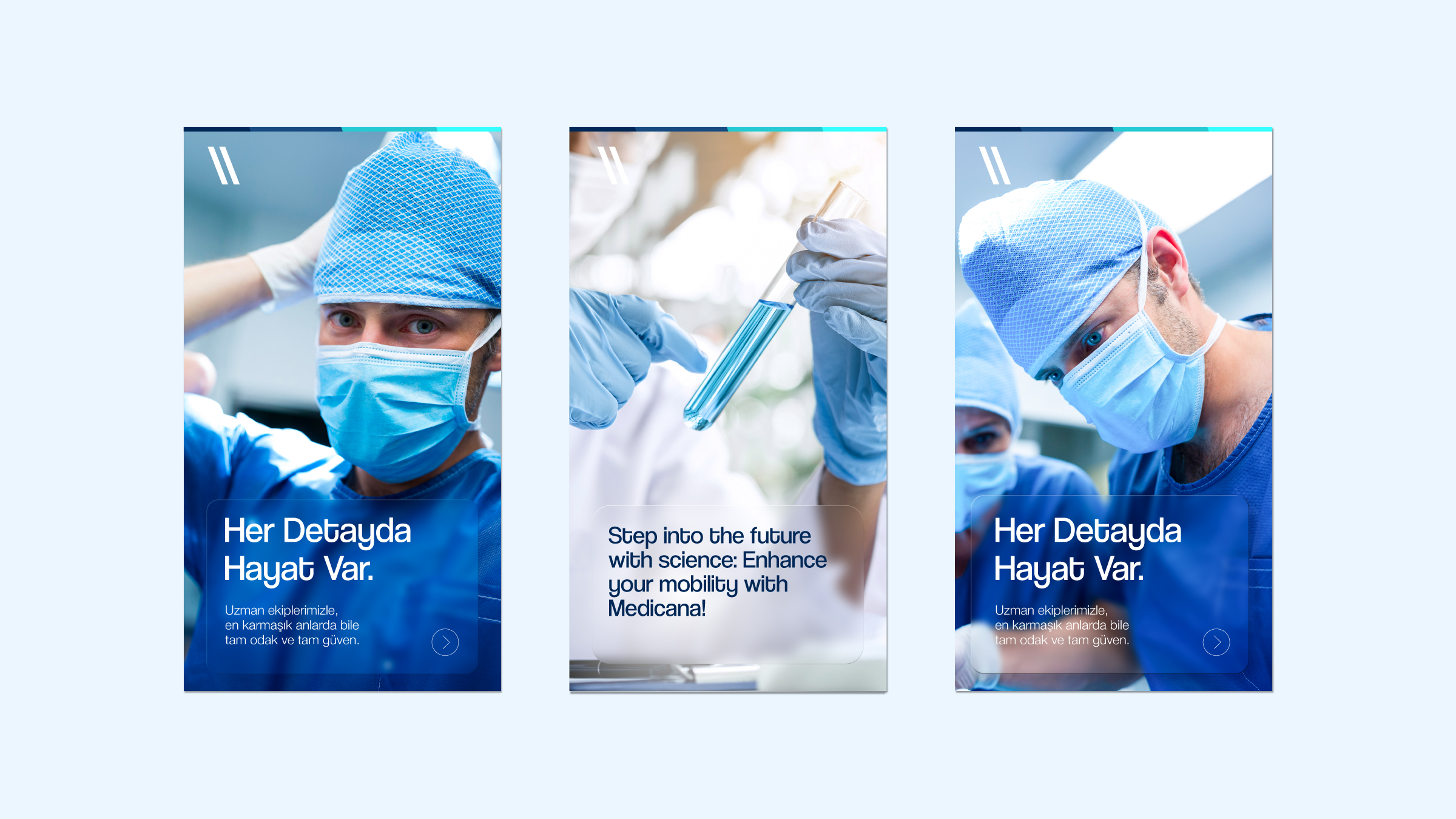 For this project, we preserved the core foundation and logo of the established "Medicana" identity while defining a more corporate and modern visual language for the global brand. The color palette, typography, and graphic standards we systematized based on the existing identity reflect Medicana's technological power and global vision.